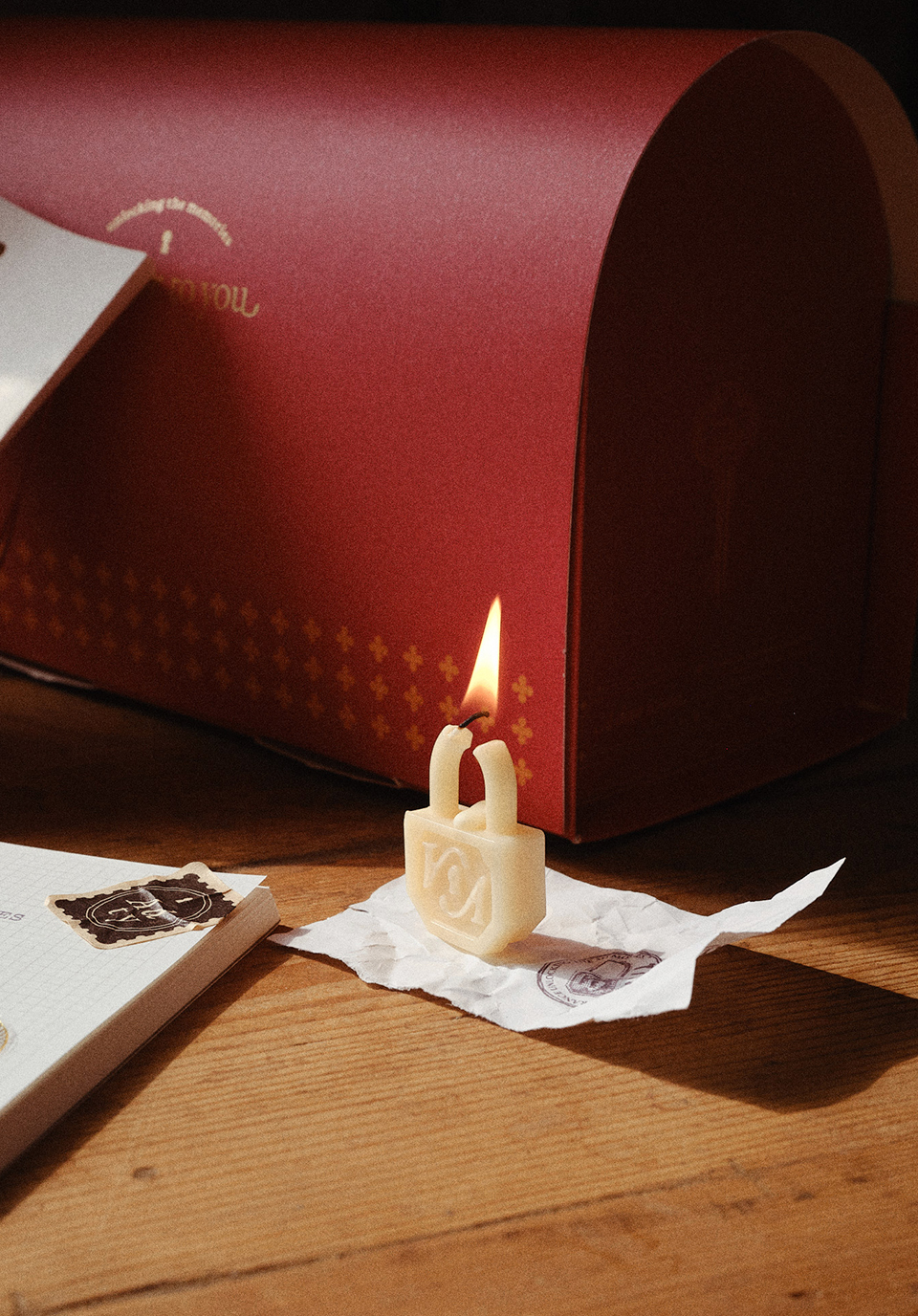 기프트 세트 또한 하나의 작은 서사로 디자인했어요. 스티커, 도장, 끈과 같은 수공적인 요소들은 사용자가 직접 꾸며 완성하는 경험을 만들어내고, 캔들을 세워두는 트레이가 곧 포장이 되는 구조는 효율성과 낭만을 동시에 잡아보려고 했죠. 이는 ‘작은 비효율 속의 낭만’이라는 브랜드 가치와 맞닿아 있구요.