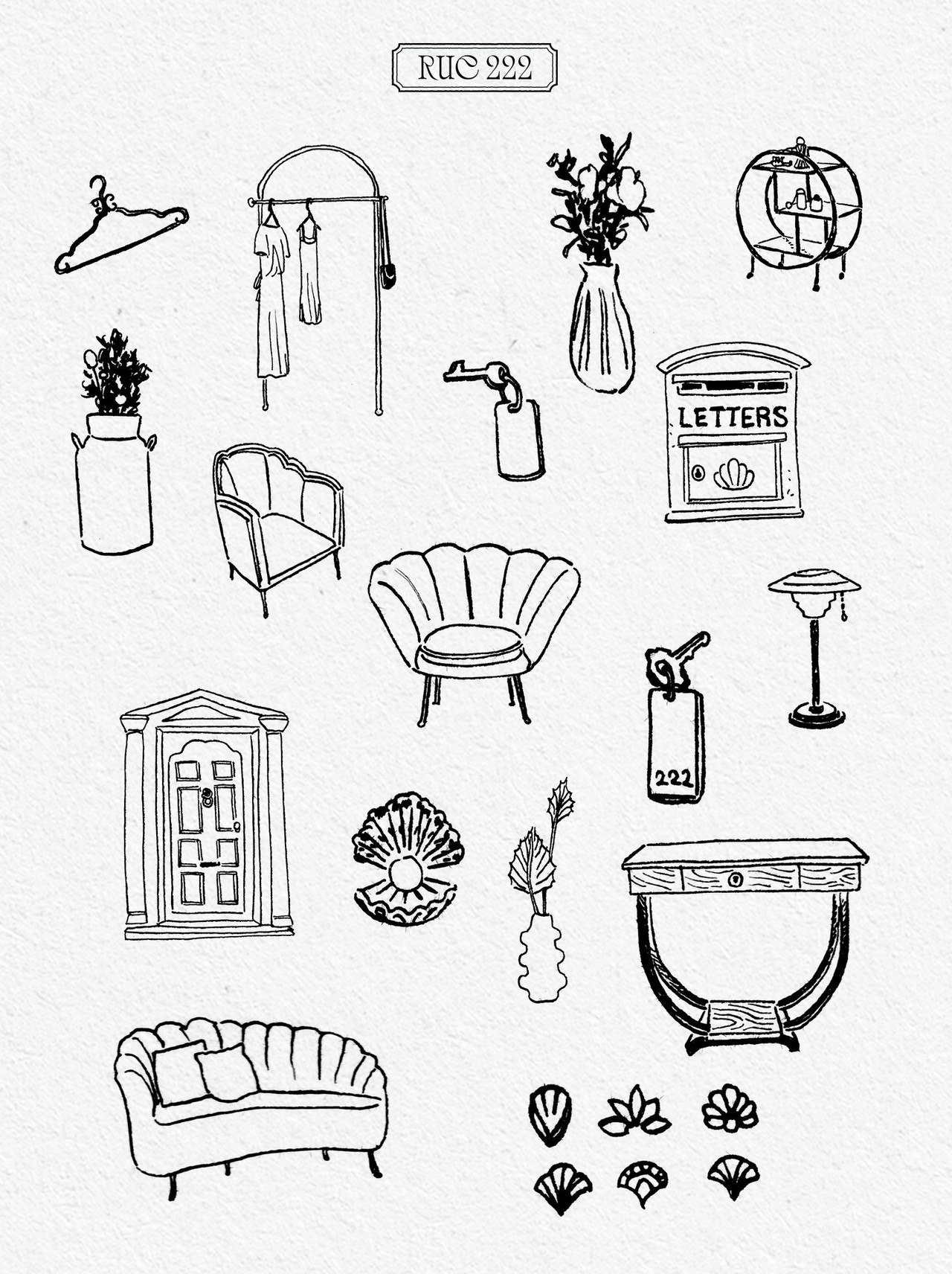 RUE222라는 이름은 여러 네이밍 옵션 중 많은 논의를 통해 결정된 이름으로, ‘파리 222번가에 위치한 조현주의 가상 집’을 뜻합니다. 조현주 님의 실제 집은 많은 사람들이 드나드는 사랑방 같은 공간으로, 좋은 물건들로 가득해 방문자들에게 늘 즐거움을 주던 기억에서 영감을 얻었습니다. 고객들에게도 마치 “우리 집에 놀러 오세요”라는 친근한 메시지를 전달하는 느낌을 주고 싶었고 이러한 세계관이 전개될 수 있도록 설정했습니다.